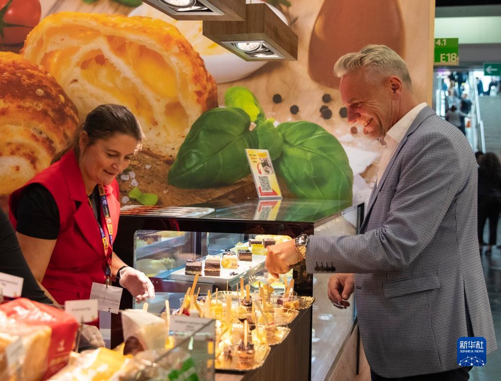 10月7日,參觀者在德國科隆國際食品博覽會上品嘗甜品。新華社記者 張帆 攝