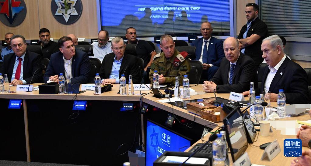 10月7日,以色列總理內塔尼亞胡(右一)出席在特拉維夫舉行的安全內閣會議。