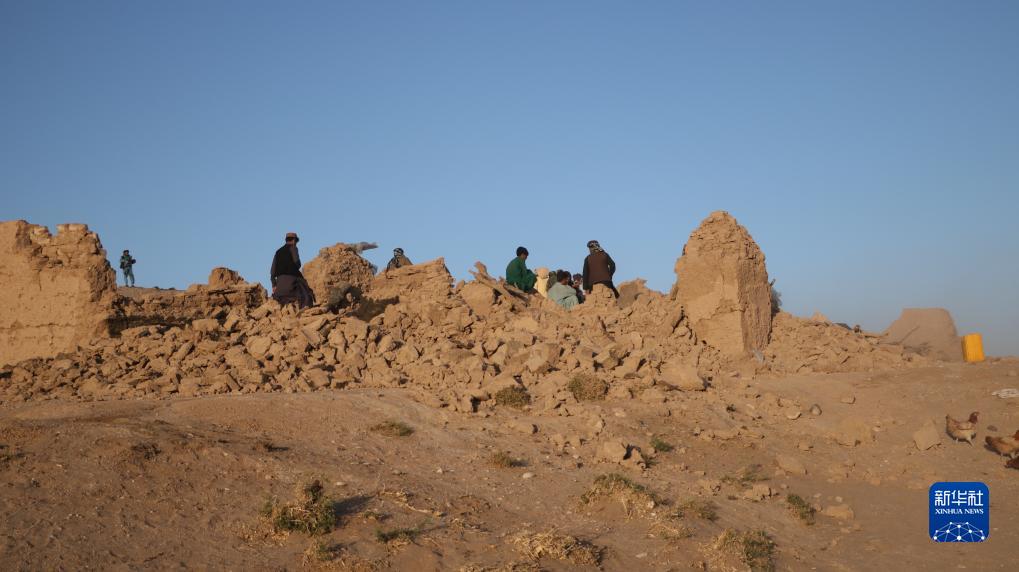 10月7日,人們在阿富汗赫拉特省進行震後救援工作。