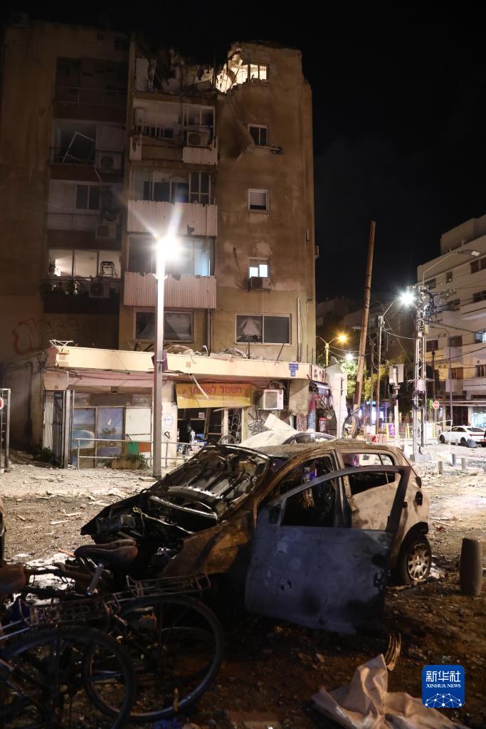這是10月7日在以色列特拉維夫拍攝的遭火箭彈破壞的車輛。