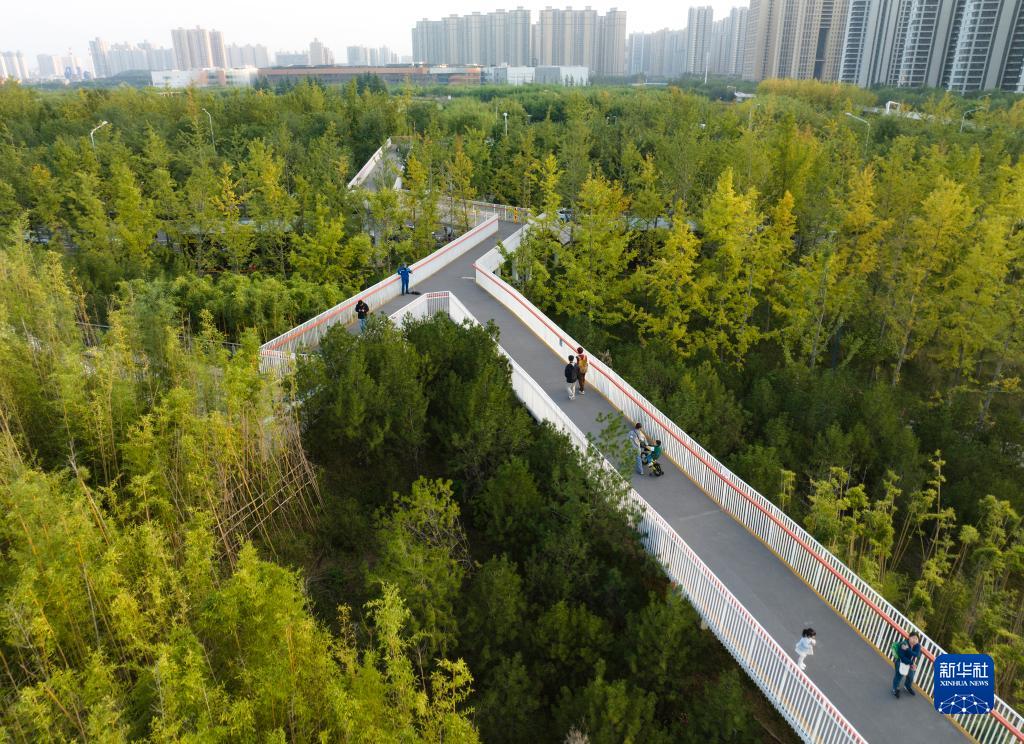 眼下,西安雁南公園裏秋景宜人,吸引不少人散步休閒。近年來,西安市新建的各類公園成為城市中美麗的風景線,也為市民提供了豐富的活動場所。