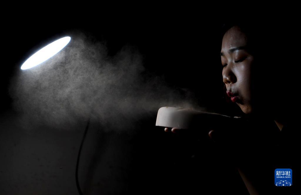 10月7日,游曉曉吹掉硯坯上的浮灰。