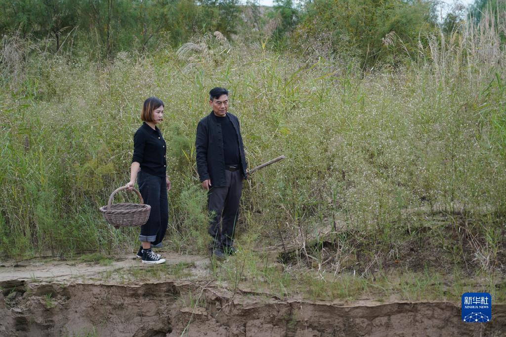 10月7日,在黃河河南洛陽段,游曉曉(左)與父親一起去黃河邊採泥。