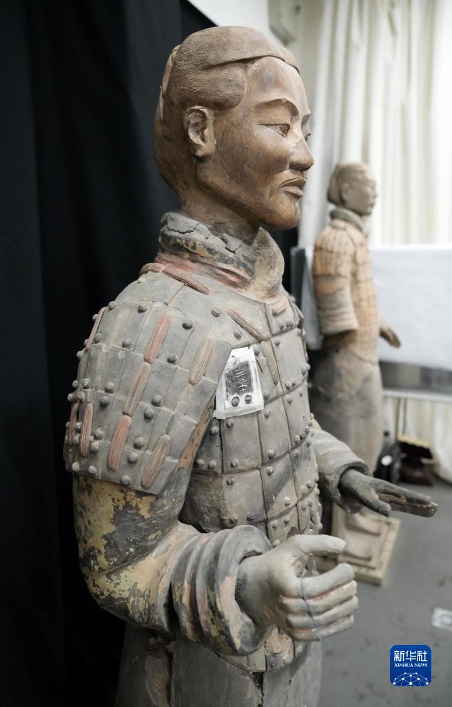 這是秦俑彩繪還原修復後的樣貌(8月23日攝)。