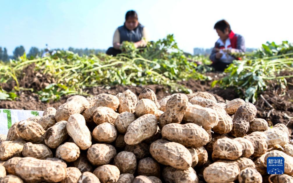10月8日,河南省濟源市五龍口鎮農民在田間收穫花生。