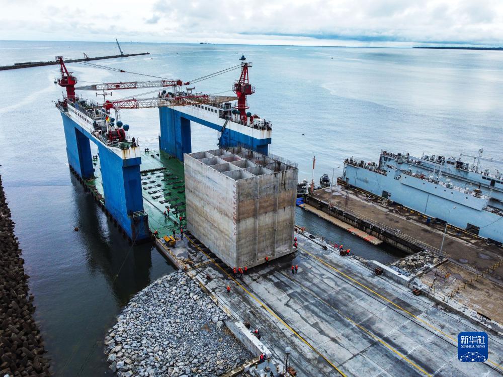 這是2022年10月22日在喀麥隆克裏比拍攝的等待出運安裝的沉箱(無人機照片)。