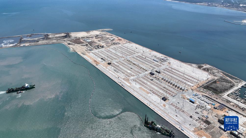 這是2023年7月1日在埃及亞歷山大省拍攝的阿布基爾港集裝箱碼頭項目建設現場(航拍照片)。