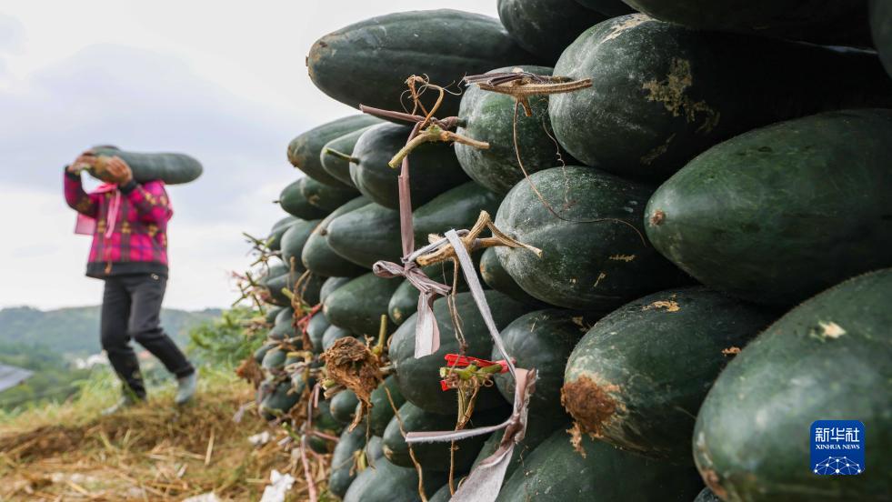 寒露時節,貴州省玉屏侗族自治縣種植的冬瓜進入成熟采收期,農民忙着采收、搬運、裝車,田間地頭一派豐收的喜人景象。