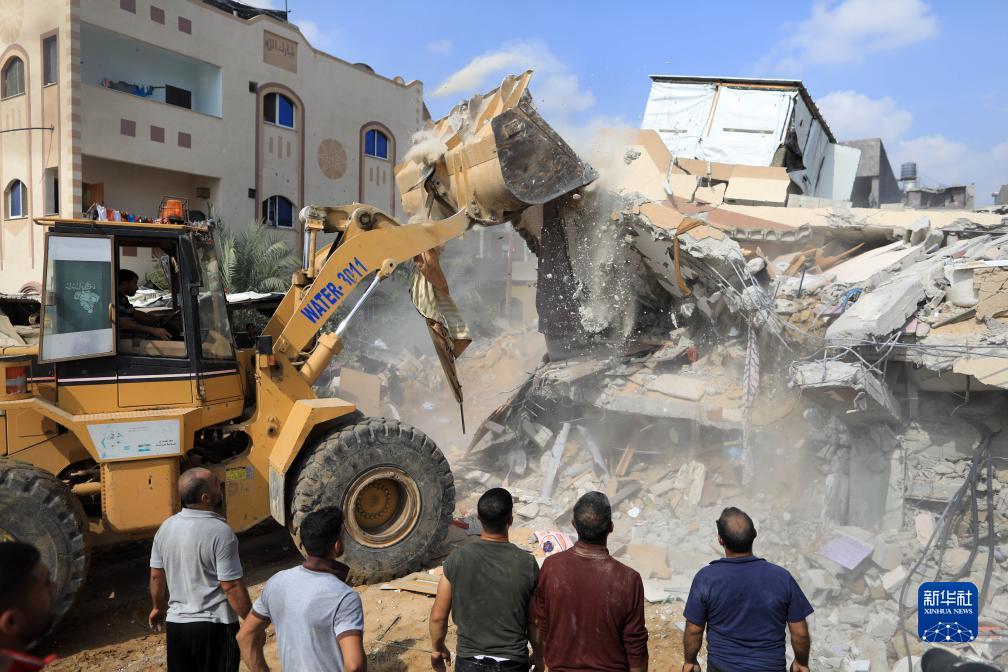 10月8日,在加沙地帶南部城市汗尤尼斯,人們在以色列空襲後的建築廢墟中搜尋倖存者。