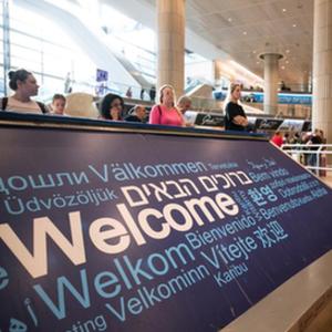 10月8日,旅客在以色列特拉維夫附近的本-古裏安國際機場候機出行。