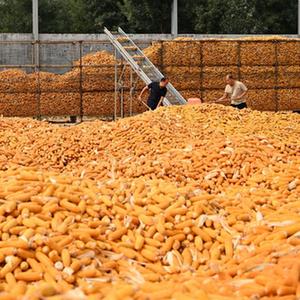 10月8日,農民在河北省隆堯縣雙碑鄉雙碑村田地內運輸剛剛收穫的玉米。