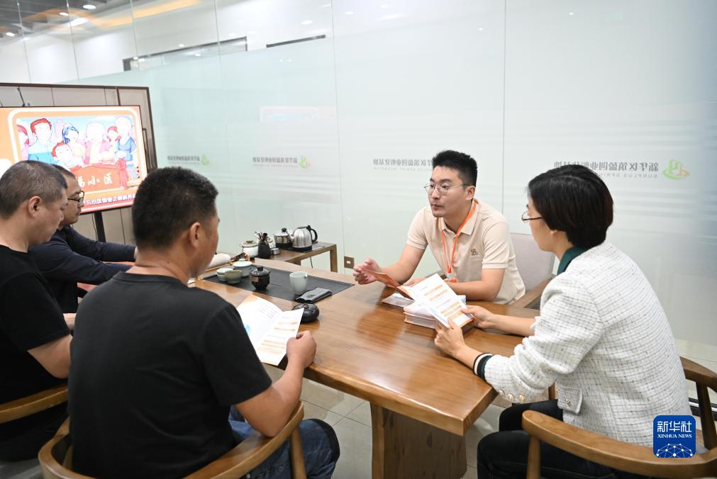 10月8日,石家莊新華區築盈創業孵化基地一個團隊的創業者在交流。