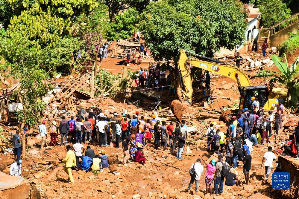 10月9日,人們在喀麥隆雅溫得山體滑坡災害現場開展搜救工作。
