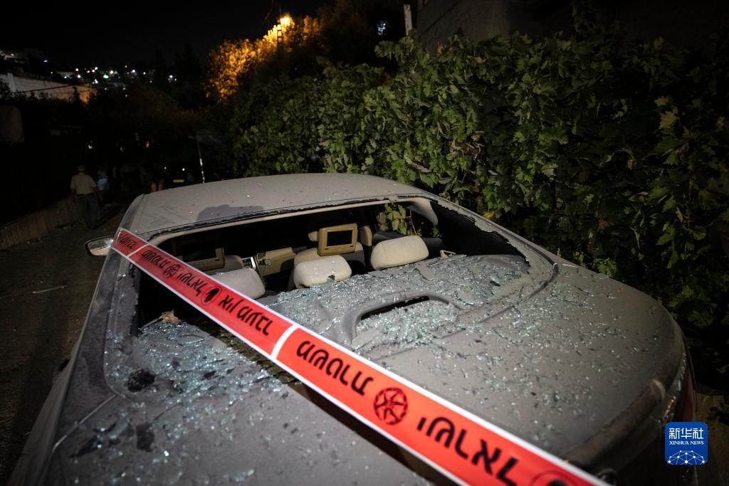 10月9日,在耶路撒冷以西的阿布高什村,一輛汽車遭到火箭彈破壞。