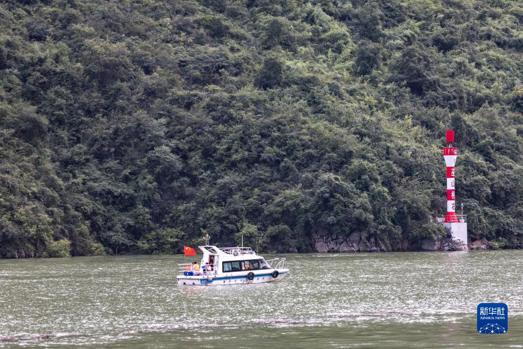10月9日,重慶市巫山縣生態環境監測站的工作人員在長江巫峽口段進行水質監測採樣。