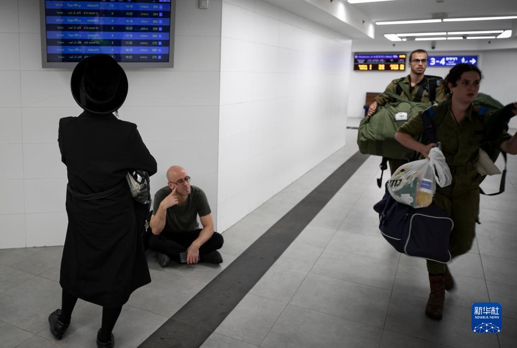 10月9日,在以色列南部城市阿什凱隆火車站,以軍士兵搭乘列車抵達。