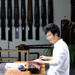 10月9日,河南省蘭考縣堌陽鎮徐場村的斫琴師徐亞衝在彈奏古琴。