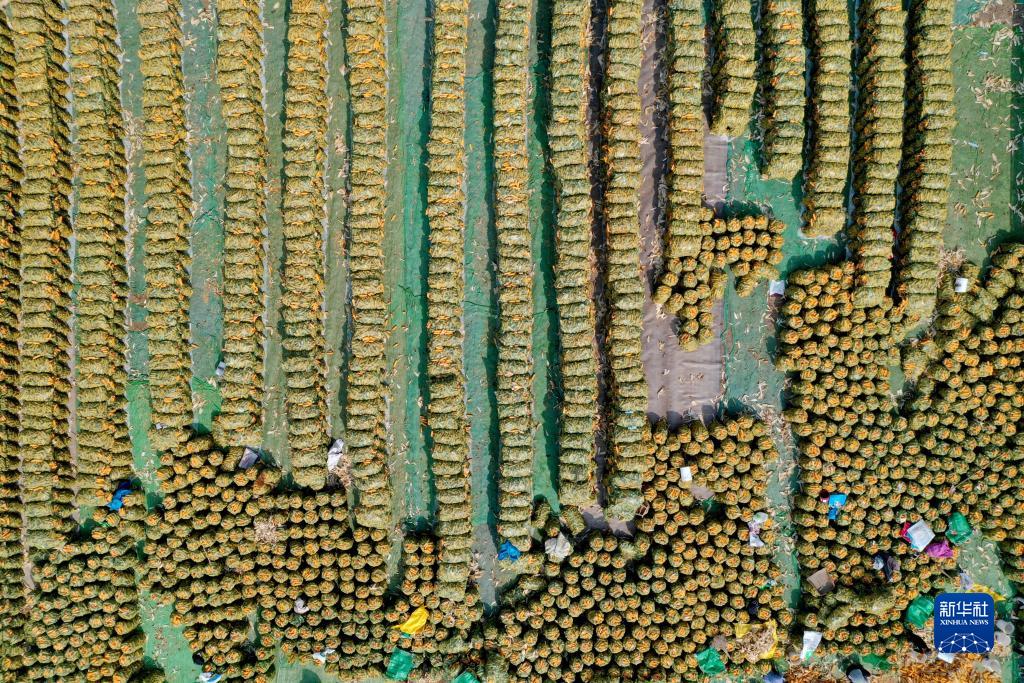 金秋時節,河北各地秋糧進入大面積收穫期,農民利用晴好天氣開展秋糧晾曬、收儲等工作,確保秋糧入倉。