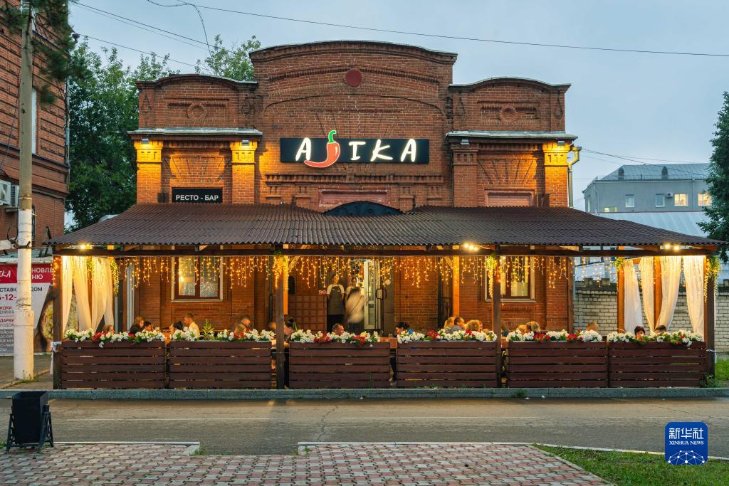 7月24日傍晚,俄羅斯布拉戈維申斯克市的一家餐廳顧客盈門。