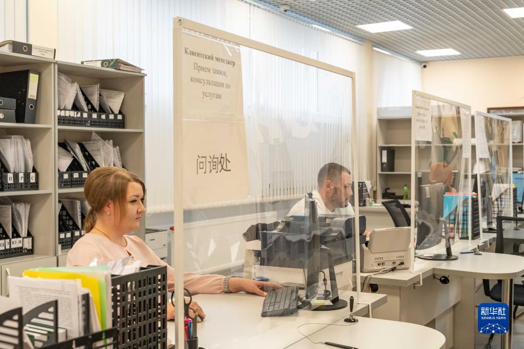 7月24日,工作人員在俄羅斯布拉戈維申斯克卡尼庫爾幹海關物流口岸辦事區工作。