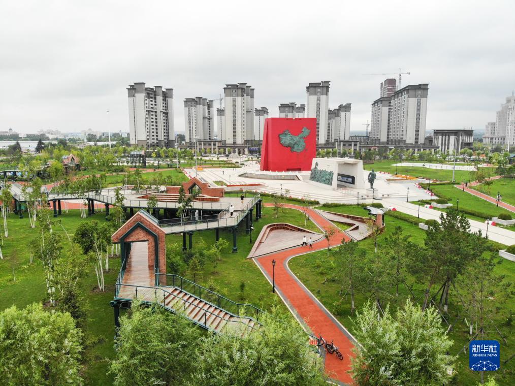 這是8月10日拍攝的中國黑河市璦琿騰衝公園(無人機照片)。
