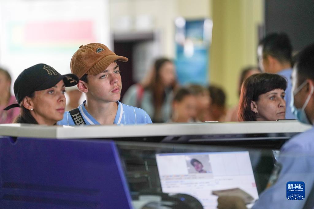 這是8月11日拍攝的入境俄羅斯公民在中國黑河旅檢口岸辦理通關手續。