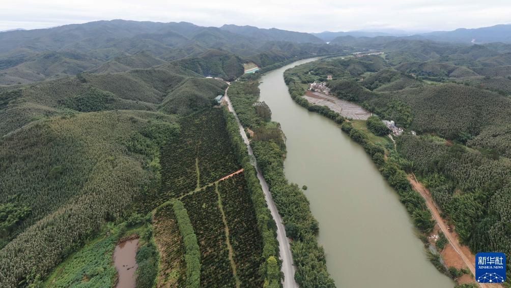 廣東廣寧縣綏江兩岸的竹林(無人機照片,10月9日攝)。