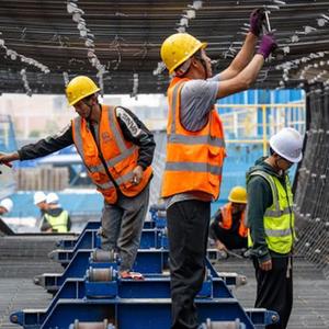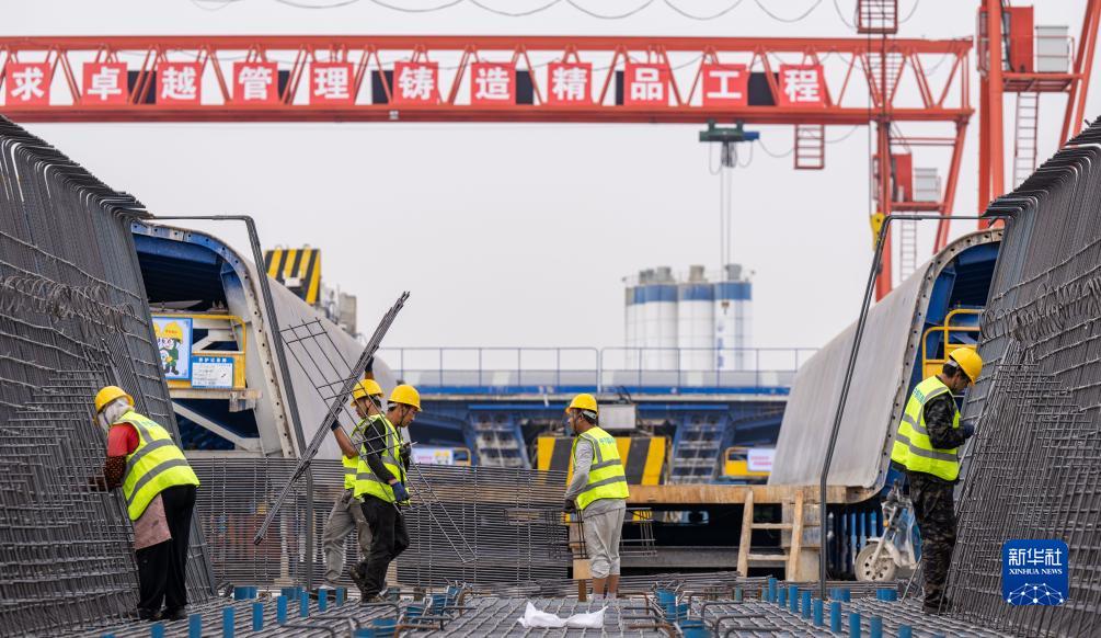 10月10日,中鐵四局施工人員在阜淮鐵路蒙城東制梁場作業。