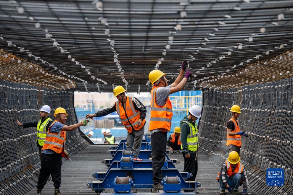 近日,在中鐵四局阜淮鐵路建設工地,施工人員利用晴好天氣抓緊施工,確保重點工程建設進度。阜淮鐵路位於安徽省北部,途經阜陽、亳州、宿州、淮北,正線全長約142.5公里,設計時速350公里。