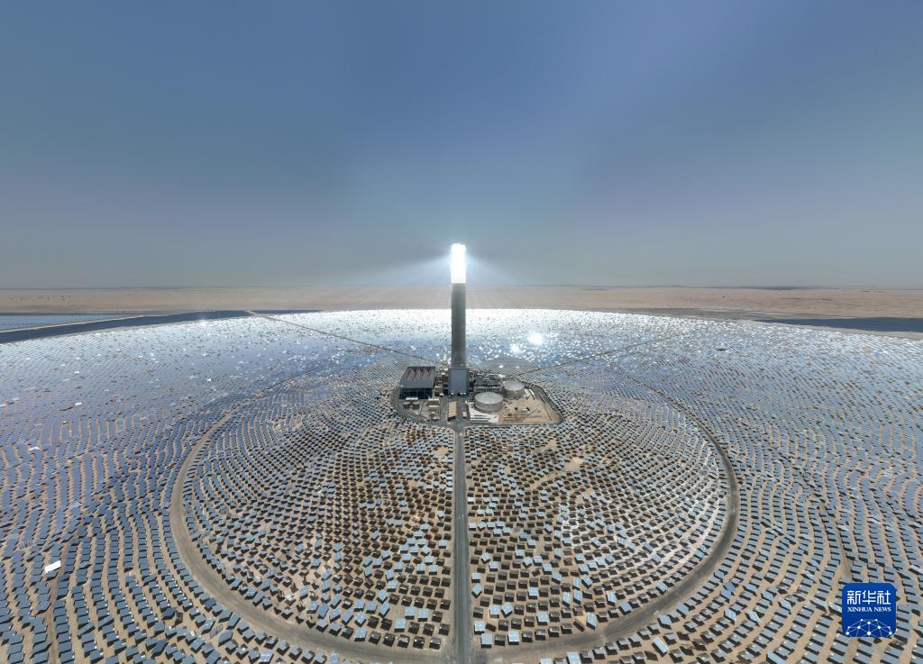 這是2022年8月15日在阿聯酋迪拜拍攝的上海電氣迪拜光熱光伏複合項目(無人機照片)。位於阿聯酋迪拜的700MW光熱和250MW光伏複合項目由上海電氣集團股份有限公司總包,裝機規模大、技術標準高,助力阿聯酋實現清潔能源目標。