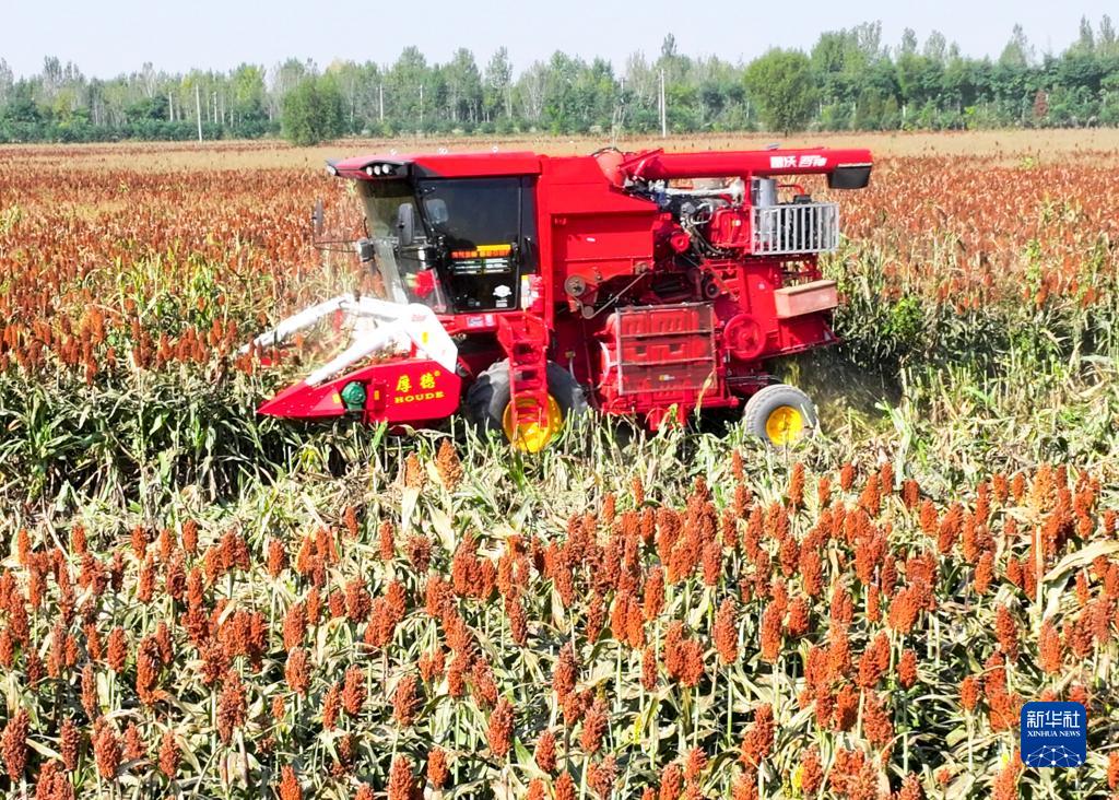 10月10日,農機駕駛員在山西省晉中市平遙縣南政鄉收穫高粱。