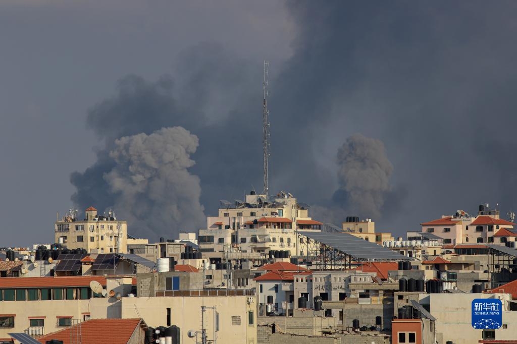 10月10日,加沙城的建築遭以色列空襲後升起濃煙。