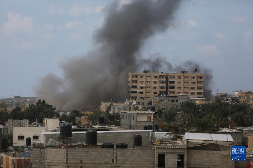 10月10日,加沙地帶與埃及接壤的拉法口岸遭以色列空襲後冒出滾滾濃煙。