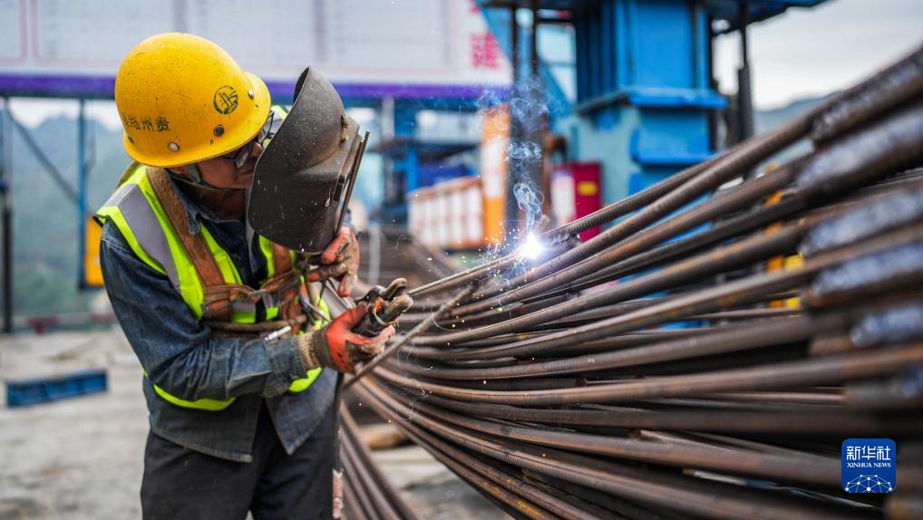 工人在納晴高速六枝特大橋項目現場進行施工(10月9日攝)。