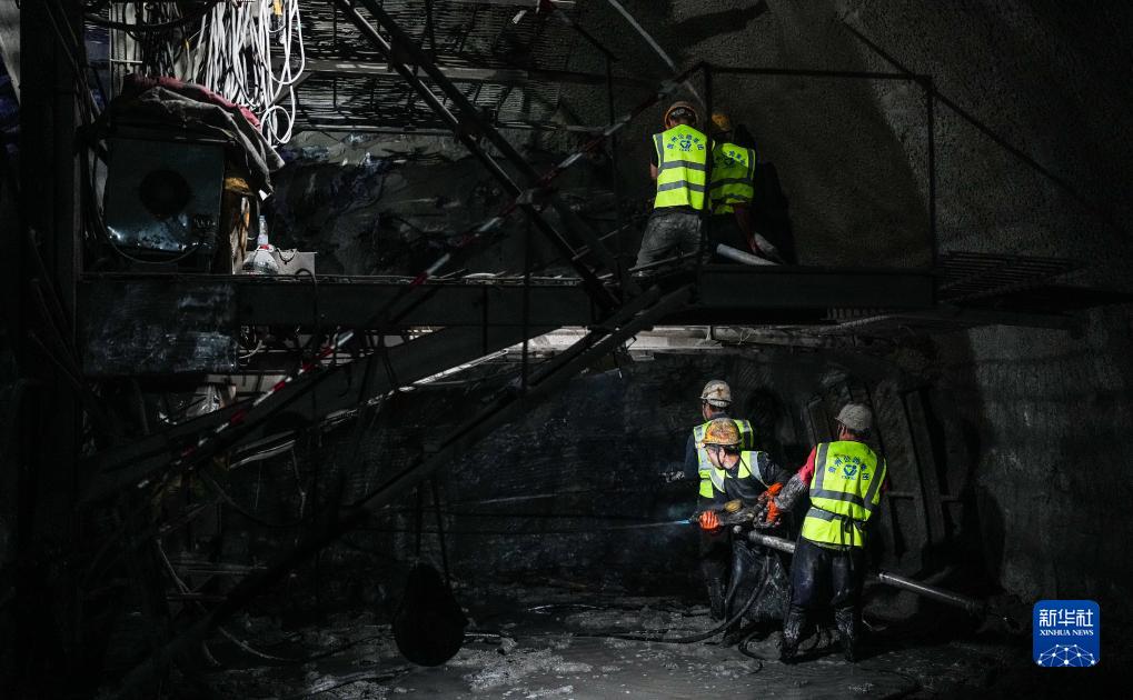工人在納晴高速下壩隧道內進行施工(10月9日攝)。