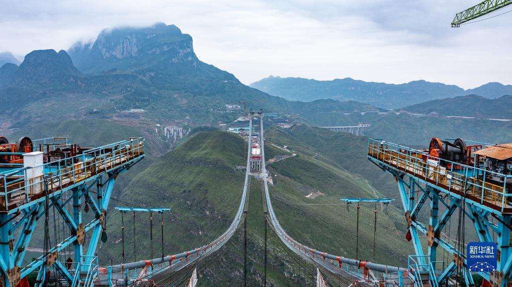 建設中的納晴高速牂牁江大橋(10月11日攝,無人機照片)。