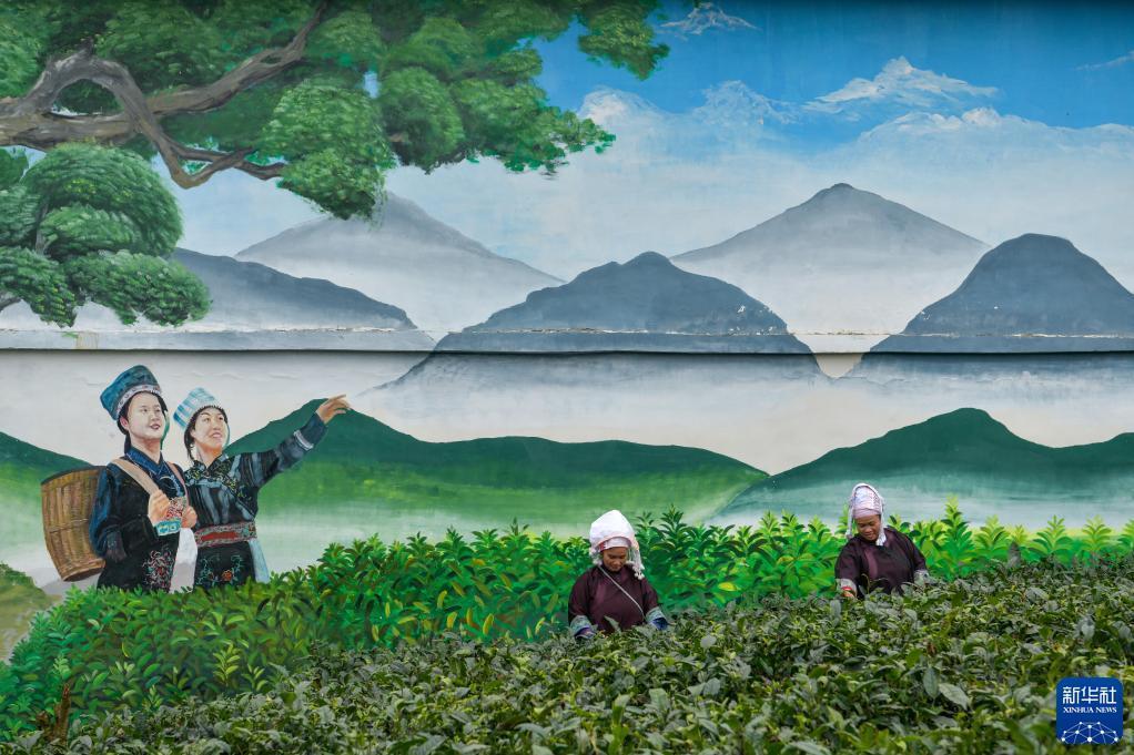 貴州省普安縣茶源街道聯盟村的茶農在採摘春茶(2023年2月23日攝)。近年來,普安縣利用“高海拔、低緯度、多雲霧、少日照”的地理優勢,引導農民種茶、採茶、制茶、賣茶,把茶産業打造成鄉村振興的支柱産業。