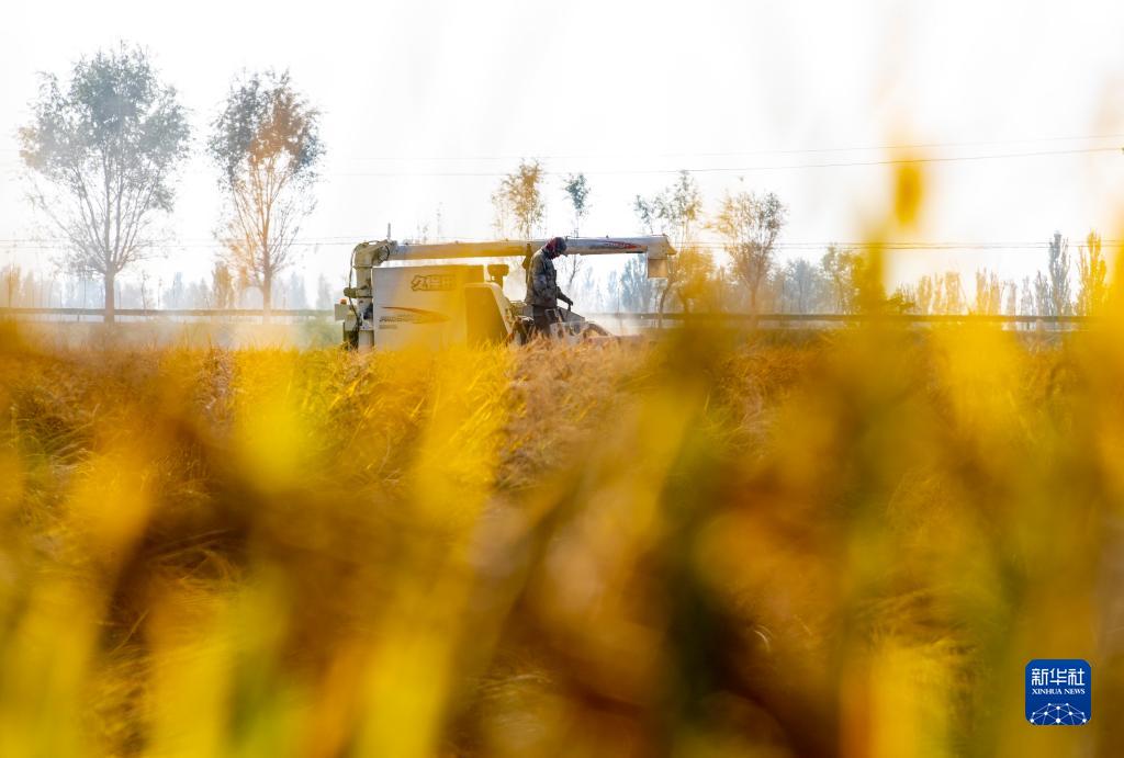 金秋時節,寧夏銀川市賀蘭縣迎來水稻收割季,田間地頭一片繁忙景象。近年來,賀蘭縣嚴守耕地紅線,築牢糧食安全,2023年全縣水稻種植面積達3.8萬畝。