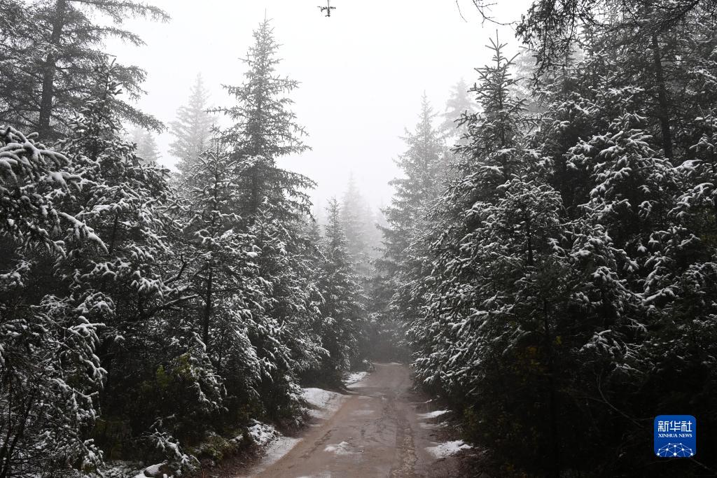 金秋時節,甘肅省張掖市肅南裕固族自治縣境內的祁連山脈迎來一場降雪,雲杉翠柏與皚皚白雪相映成趣,美不勝收。