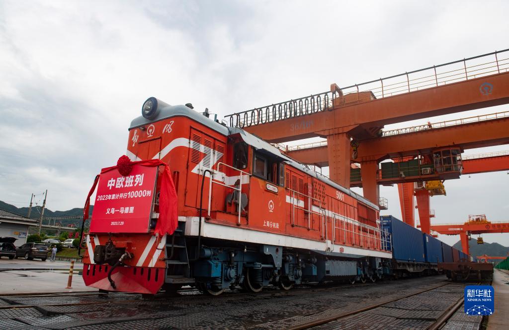 7月29日,滿載110個標箱出口貨物的X8020次中歐班列從鐵路義烏西站鳴笛啟程。