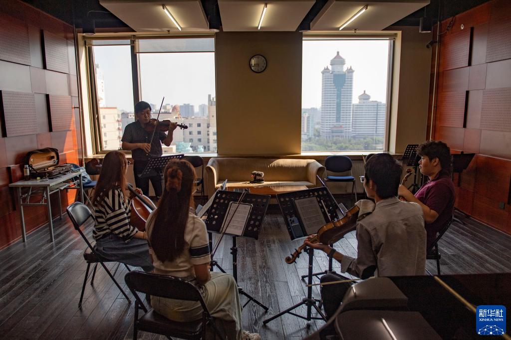 9月14日,中央音樂學院教授於兵(左二)在指導學生練習海頓的弦樂四重奏《雲雀》。