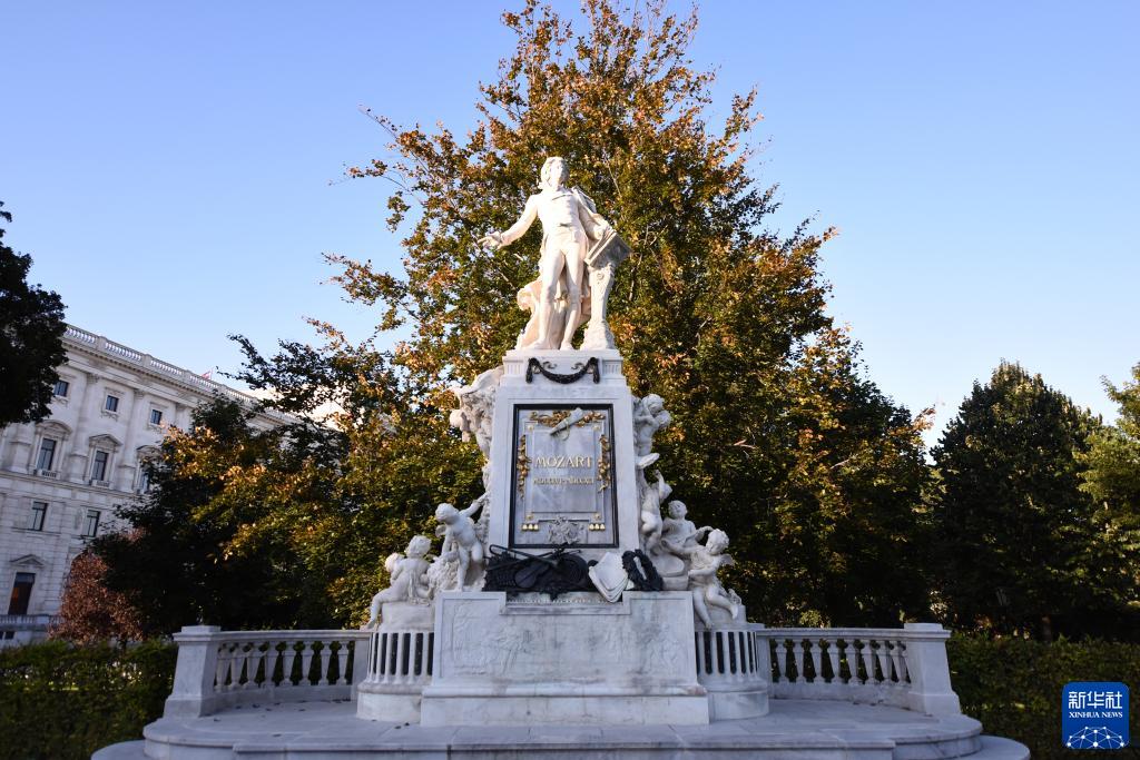 這是9月7日在奧地利維也納拍攝的莫扎特紀念碑。