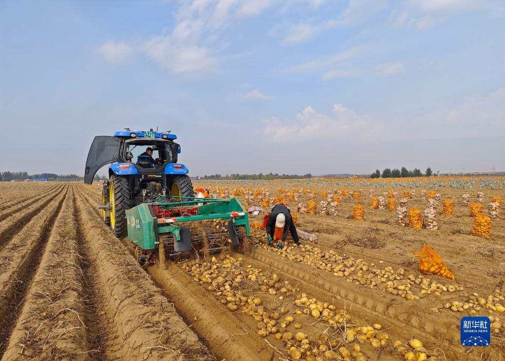10月11日,內蒙古自治區鄂爾多斯市達拉特旗展旦召蘇木農民收穫土豆。
