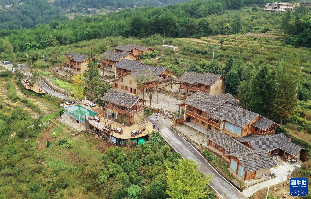 10月10日拍攝的位於重慶市石柱土家族自治縣橋頭鎮的民宿院落群(無人機照片)。