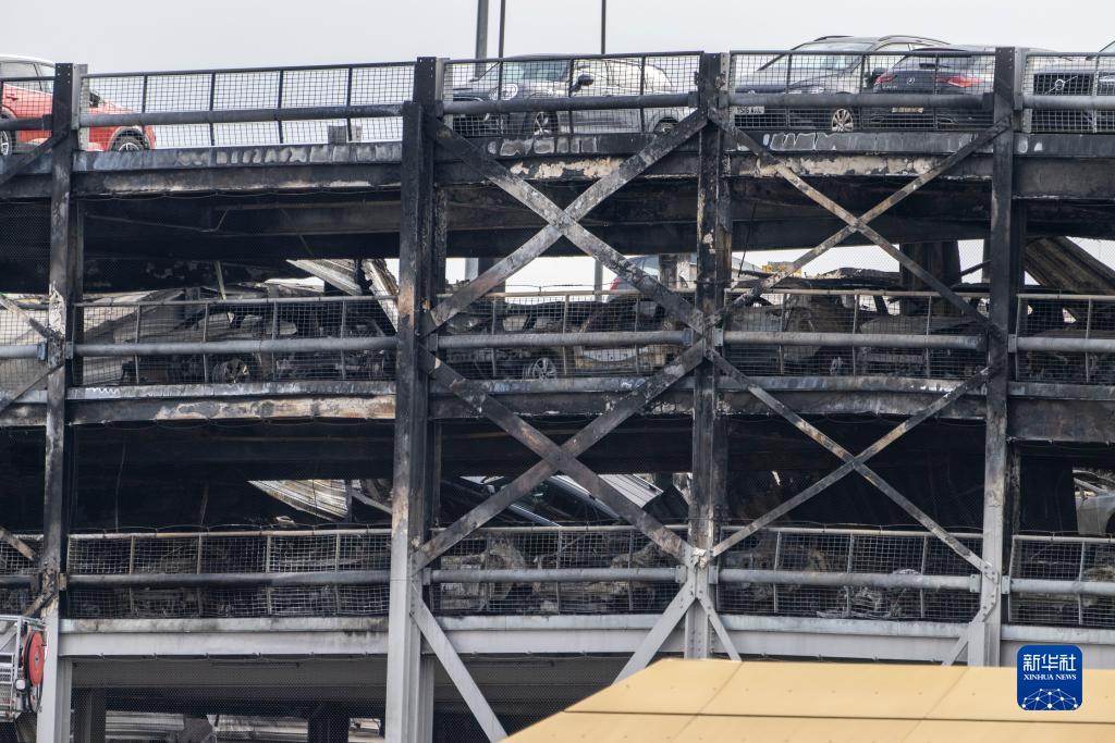 這是10月11日在英國倫敦盧頓機場航站樓拍攝的失火停車場。