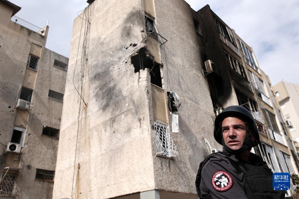 這是10月11日在以色列阿什凱隆拍攝的遭加沙火箭彈襲擊的建築。