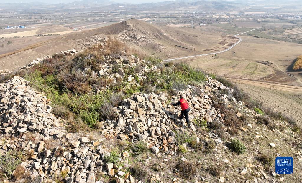 10月11日,關富軍攀上長城一座烽火&巡查(無人機照片)。