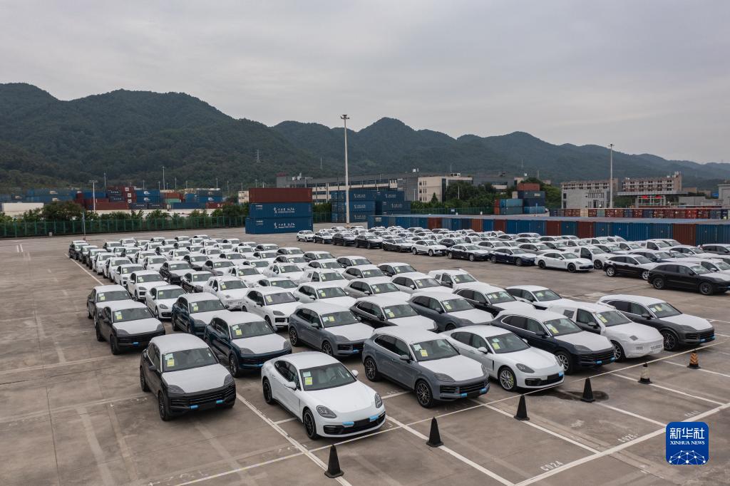 這是10月11日在重慶國際物流樞紐園區拍攝的等待檢測的進口整車(無人機照片)。