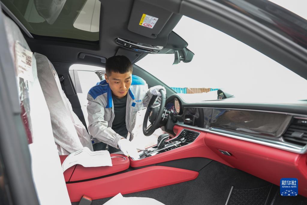10月11日,在位於重慶國際物流樞紐園區的重慶汽車整車進口口岸,工作人員對進口整車進行檢查。