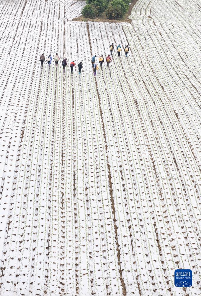 近日,在位於嘉陵江畔的四川省蓬安縣錦屏鎮中壩社區蔬菜種植基地,當地村民開始蘿蔔幼苗的秋播秋種,在成壟成行的大地上“破膜露苗”,仿佛在書寫一個個音符,譜寫一支勞動“交響曲”。